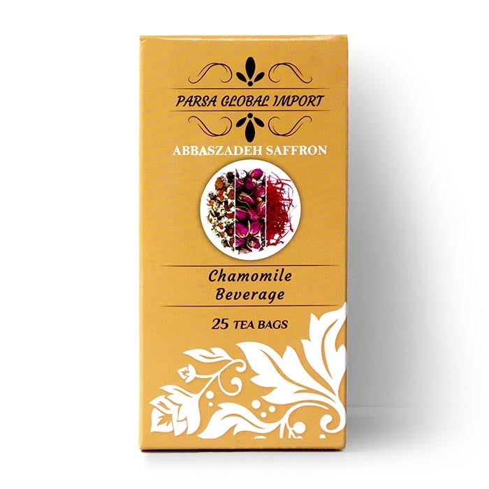 Chamomile has great relaxing properties and is indeed a tasty drink. Once Chamomile is mixed with premium Persian Saffron and Premium Persian rose tea, Its taste is enhanced and aroma is increased. Simply, enjoying relaxing with our Chamomile Tea. This tea contains 25 tea bags.